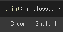 smelt(빙어)가 양성 클래스임을 알 수 있다