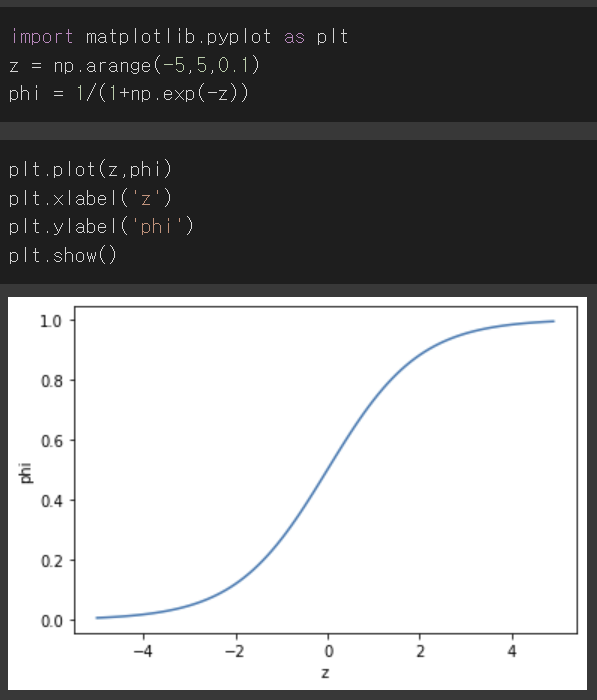 선형 방정식에서의 z값은 범위가 정해져 있지 않지만, 확률이 되려면 0과 1 사이의 값이 되어야 한다