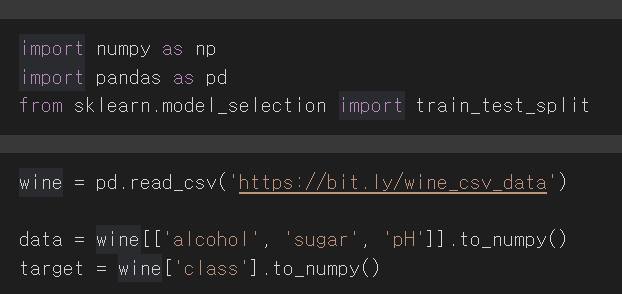 그리고 wine데이터를 가져와서 wine에 저장해준다